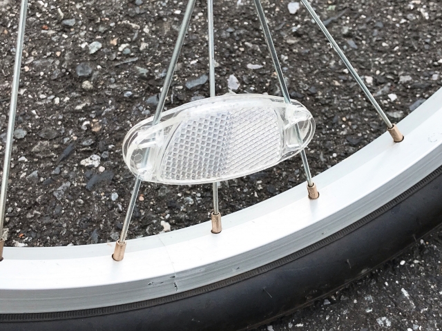リフレクター付きスポークや反射シールをタイヤに貼るなど、全方向からの視認性を意識した装備もおすすめです。