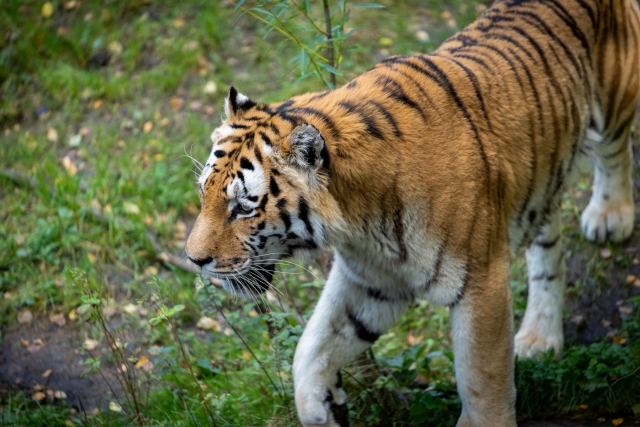 アムールトラ(シベリアトラ)は、ネコ科最大級の動物であり、筋肉質で強靭な体を持ちます。