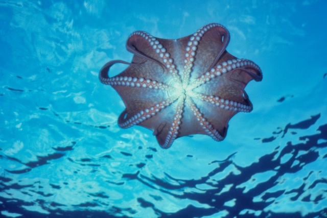 ミズダコを見つけた時 距離を保ち、刺激を与えない