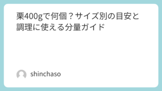 生活 栗400gで何個?サイズ別の目安と調理に使える分量ガイド 栗400gは、大きさによっておよそ13〜40個程度になります。大粒なら少なく、中サイズや小粒なら数が多くなるため、同じ400gでも料理に使える分量は異なります。本記事では、栗400gが何個になるのかをサイズ別に紹介し、さらに料理ごとの人数分... 生活